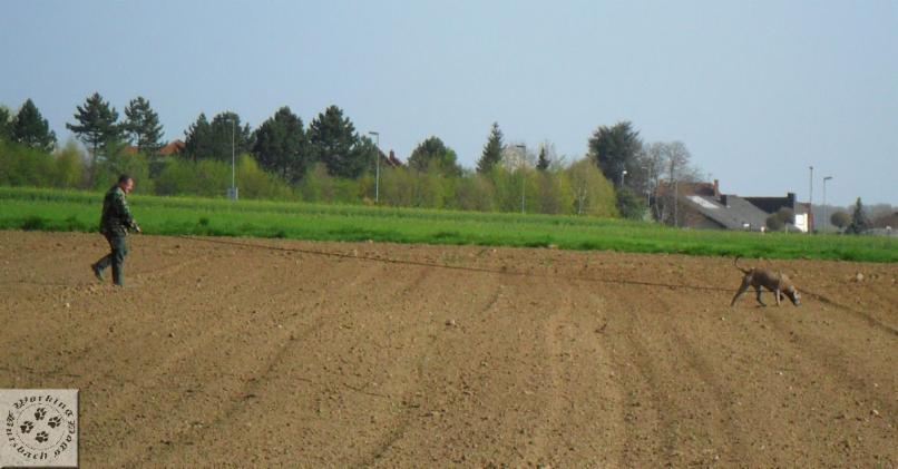 Dazu ist als erstes zu sagen, dass die Fährtenarbeit diejenige ist, bei welcher der Hund über lange Zeit hochkonzentriert und motiviert arbeiten muß. Hinzu kommt noch, daß wir den Hund so ausbilden müssen, daß er ohne Hilfen von Seiten des Hundeführers selbstständig und korrekt arbeiten lernt.